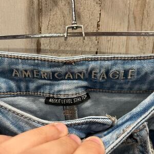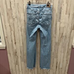 American Eagle Super Hi Rise Flare Peekaboo Lace Pocket Distressed Jeans Size 6
