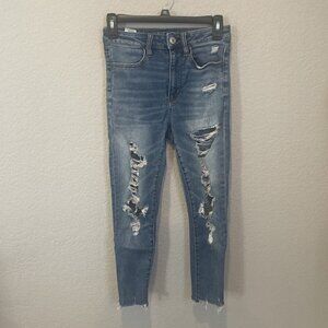 American Eagle Super Hi Rise Jegging Womens 2 Reg Distressed Super Stretch Denim.