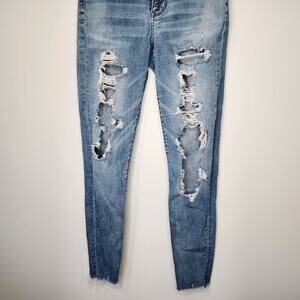 American Eagle Super Hi-Rise Jegging Distressed Medium Wash Denim 6 SHORT