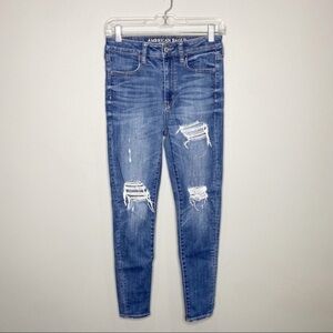 Distressed Super Stretch. Super High Rise. Pre-owned condition excellent. Almost look brand new. Please check out all my pics and please ask any questions.