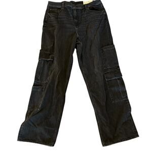 American Eagle Super High Rise Baggy Straight Cargo Jeans Size 16 Grunge Skater