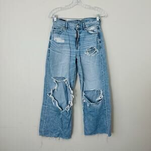 American Eagle Super High Rise Baggy Wide Leg Distressed Jeans Women’s 0 Short