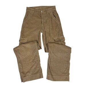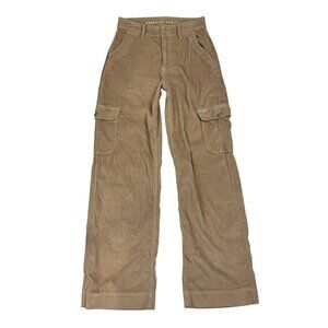 American Eagle Super High Rise Baggy Wide Leg Pants Size 00 Corduroy Cargo Tan