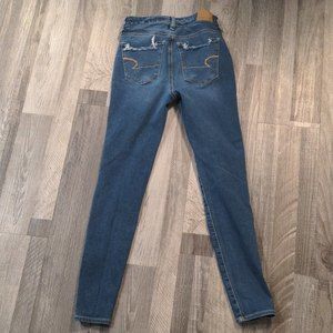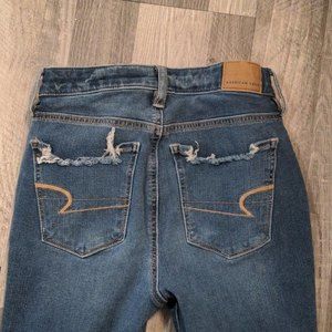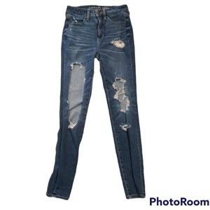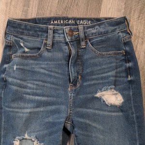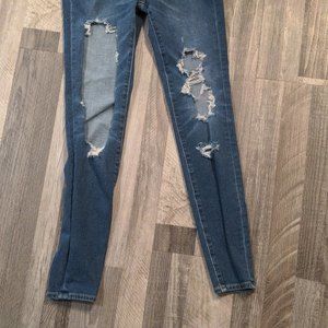 -big hole in the front of the jeans on the thigh, other distressing throughout, look at pictures