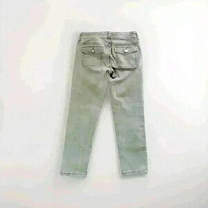 Elevate your denim game with these American Eagle jegging crop jeans in size 0. The light fabric wash and distressed details give a modern twist to the classic green color. The 5-pocket design, complete with button and zipper accents, offers ample storage space for your essentials. The extra-slim fit and high-rise waist provide a comfortable and flattering fit for all body types. Perfect for any season, these jeans are easy to care for and machine washable. Get ready to turn heads with these stylish and versatile crops.