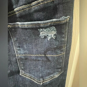 American Eagle Super High Rise Jeggings, Dark Wash, Size 6 Long. Approximately 28’ Inseam