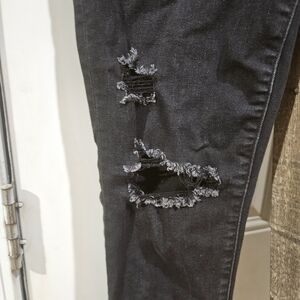 American Eagle super high rise jeggings..black size 10 preowned normal wear good condition..distressed style