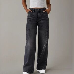 American Eagle Super High Waisted Baggy Wide Leg Cargo Jean - 000