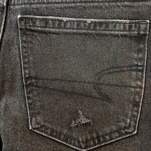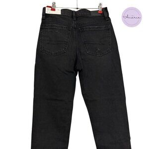 American Eagle Super High-Rise Ankle Straight Jeans, Black Distressed