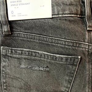 Brand new with tags. Black distressed jeans, ripping on front and back pockets. Super high-rise ankle straight fit. Measurements available upon request. Bundle to save & send offers!