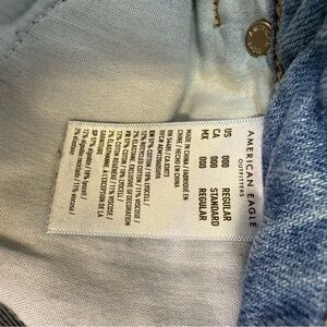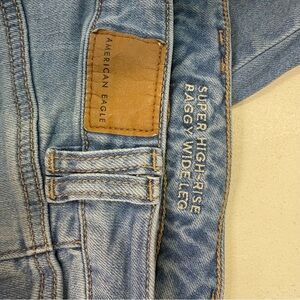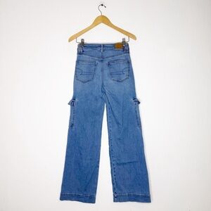 Keywords: American Eagle cargo jeans, wide leg denim, super high-rise jeans, utility jeans, AE baggy jeans, Y2K aesthetic, women’s size 000, light wash denim, AE Earth Loves, stretchy cargo pants