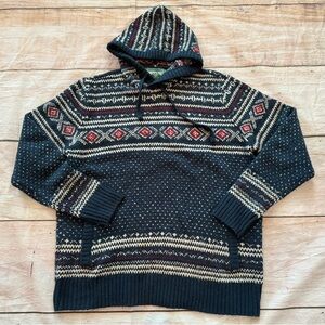 American Eagle Super Soft Birdseye Fairisle Hooded Sweater Mens Xxl