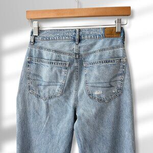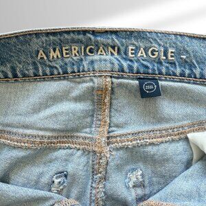 These American Eagle jeans feel like your favorite broken-in pair from day one — buttery soft, lightweight denim with a relaxed, wide-leg fit and major distressing for that perfectly lived-in look. The light wash has subtle fading and whiskering, and the fabric moves with you for all-day comfort.