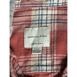 American Eagle Super Soft Flannel Shacket Mens XL Hooded Red Plaid Cotton