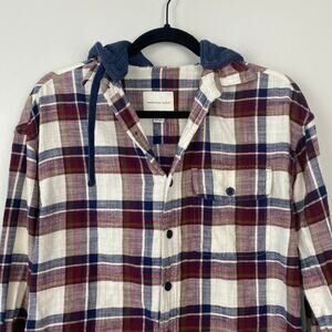 American Eagle Super Soft Plaid Flannel Hooded Lightweight Shacket Size XS