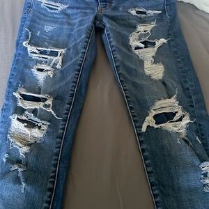 American Eagle Super Stretch Super Low Jegging Distressed Raw Hem US 4