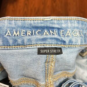 American Eagle Super Stretch highly distressed jean shorts, medium blue denim, 0
