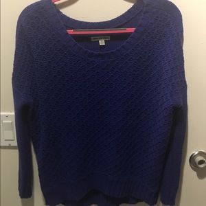 Beautifully soft royal blue sweater. There is a bit of a high lo thing going on but it's not cropped at all.