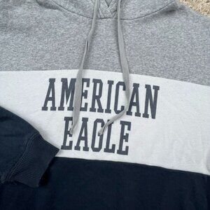 American Eagle Sweater Adult Medium Gray Pullover Hoodie Drawstring Long Sleeve