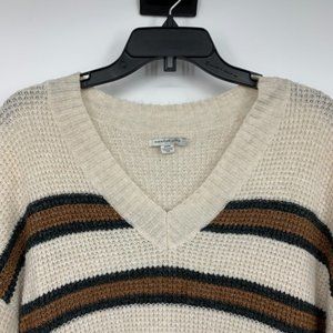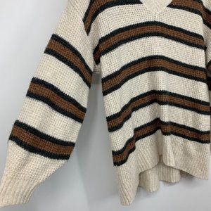 American Eagle Sweater Beige Stripe V Neck Tunic Pullover Oversize