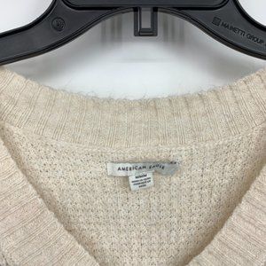 American Eagle Sweater Womens Size Medium Beige Stripe V Neck Tunic Pullover Oversized. Great pre-owned condition. Chest: 20"