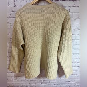 American Eagle Sweater Cream Wool Ribbed Knit Cozy Classic V Neck Sweater Size L
