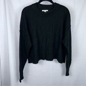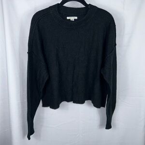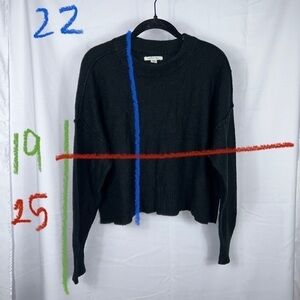 American Eagle Sweater Cropped Long Sleeve Tight Waffle Knit Crewneck Pullover