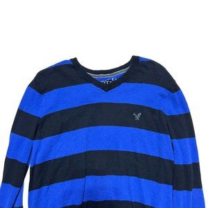 American Eagle Sweater Mens Large V Neck Colorblock Blue Black Long Sleeve