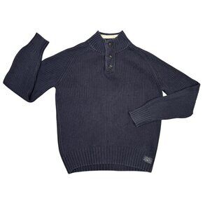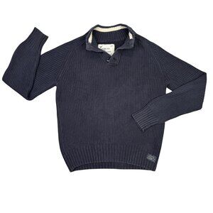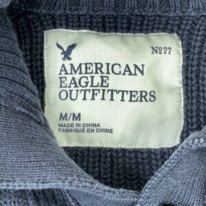 American Eagle Sweater Mens M Blue Quarter 1/4 Button Pullover Henley Mock Neck