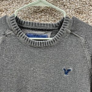 American Eagle Sweater Mens Medium Gray Crewneck Normcore Cotton Preppy Logo