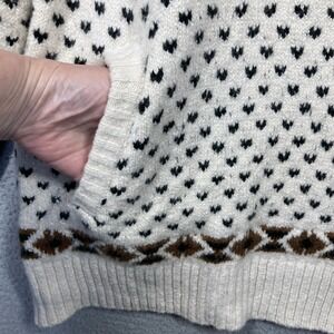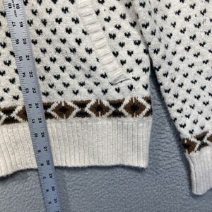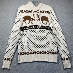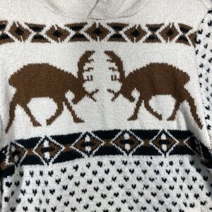 American Eagle Sweater Men's Small Cream Brown Fair Isle Deer Hooded Pullover