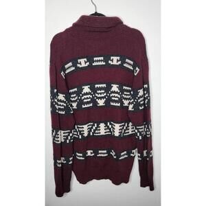 American Eagle Sweater Mens XL Maroon Gray Shawl Collar Pullover Aztec Pattern