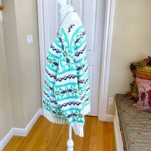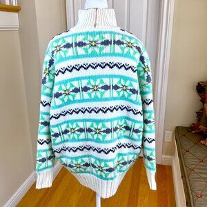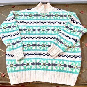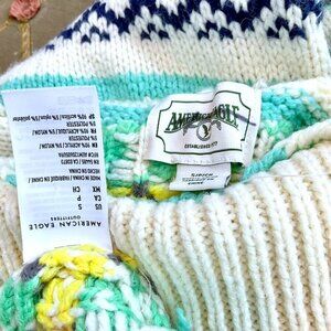 American Eagle Sweater Mock Neck Fair Isle Ski Oversized in White Aqua 2022 (S)