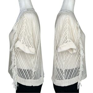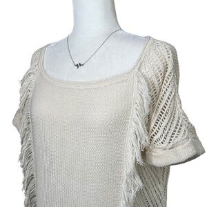 American Eagle Sweater Short Sleeve Crochet Fringe Ramie Cotton Cream Medium M