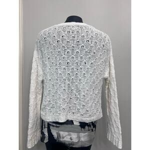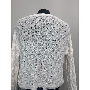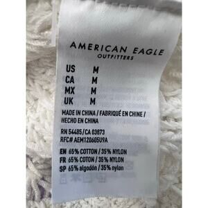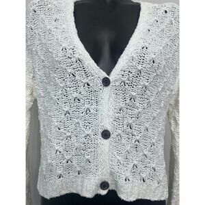 American Eagle Sweater Sz M V-Neck ButtonDown Open Weave White Cotton Acadamia