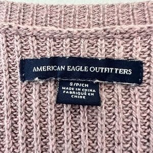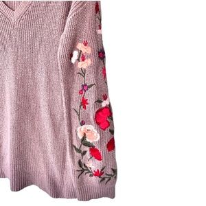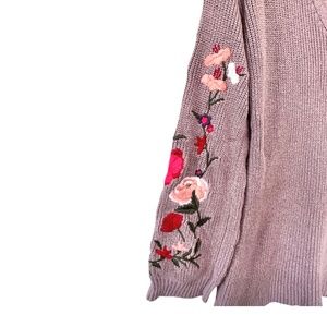 American Eagle Sweater Womens Pink Floral Embroidered V-Neck