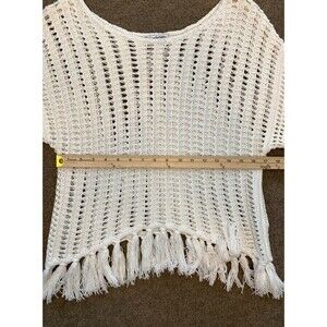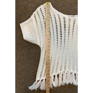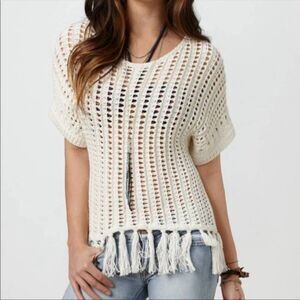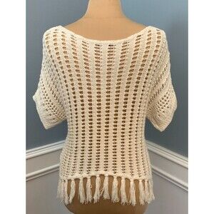 American Eagle Sweater Womens S Petite Open Knit Fringe Short Sleeve Pullover