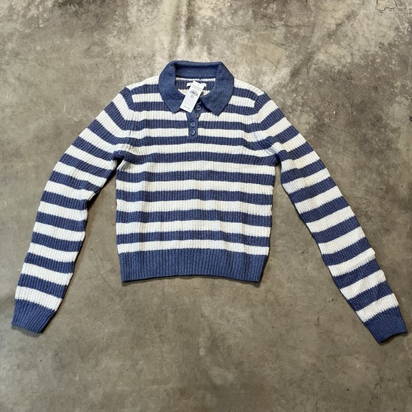 American Eagle Sweater Womens Size Small Blue White Striped Collared Preppy