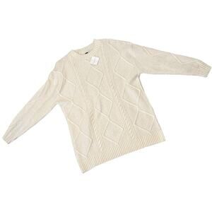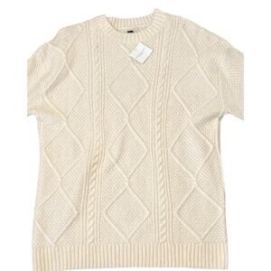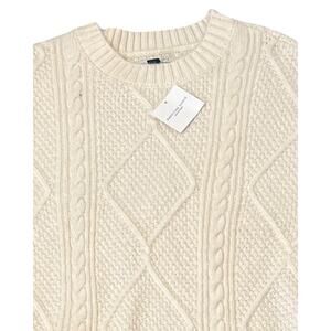 American Eagle Sweater Womens Small White Pullover Crew Neck Cableknit Soft NWT