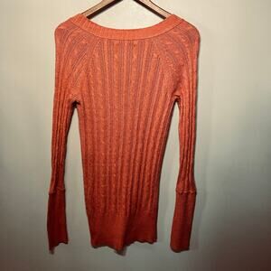 American Eagle Sweater Y2K Academia Peach Deep V Neck Long Sleeve Ribbed Knit