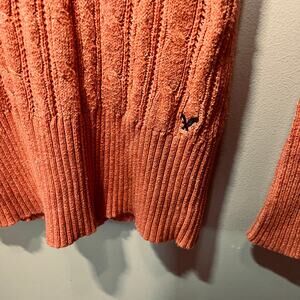 American Eagle Sweater Y2K Academia Peach Deep V Neck Long Sleeve Ribbed Knit L