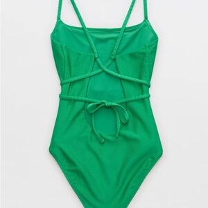 Fabric UPF can vary when the garment is wet, stretched or washed repeatedly. Sunscreen is always recommended. NWT Stylish green one-piece swimsuit. Perfect for beach days.