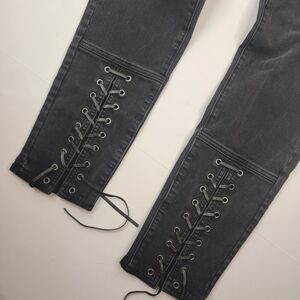 American Eagle Sz 10 Long Jeggings Highest Rise Ankle Lace-up Gray