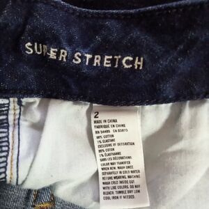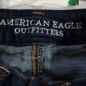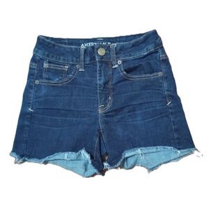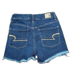 American Eagle Sz 2 Women's High Rise Solid Midi Super Stretch Denim Jean Shorts with distressed raw hem