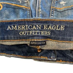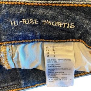 American Eagle Sz 0 Blue Denim Distressed Hi-Rise Shortie Super Stretch Shorts