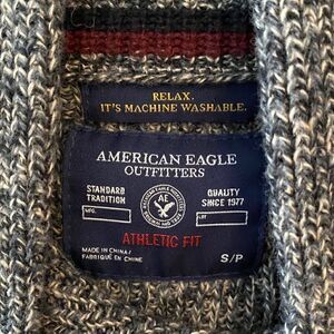 American Eagle Sz S Heather Gray Chunky Wool High Open Collar Pullover Sweater