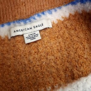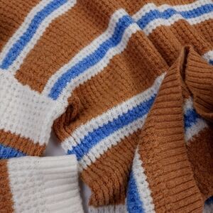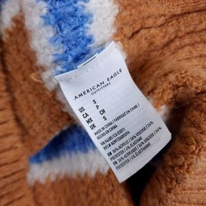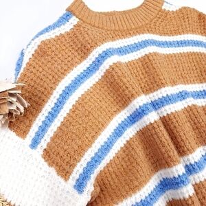 American Eagle Tan Blue White Striped Viscose Blend Sweater Sz S Oversize Fit
