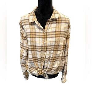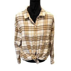 American Eagle Tan & Brown Plaid Button Down Long Sleeve Shirt Women's Size M