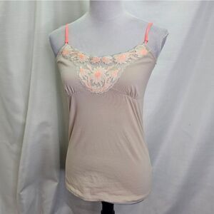American Eagle Outfitters Tan and Coral Lace Tank Top Size Large