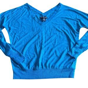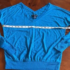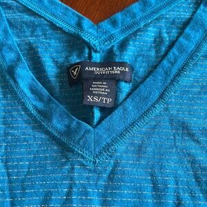 American Eagle Teal Blue with Silver Metallic Striped Knit Top Size XS Sparkly